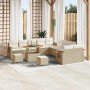 Conjunto de sofás de jardín con cojín 18 pcs Beige y Gris Claro