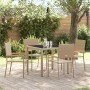Este conjunto de comedor moderno para el jardín es la mezcla perfecta de estilo y funcionalidad para cualquier espacio exterior. Si te gustan las vibras modernas y estar al aire libre, este es para ti. Tiene líneas limpias y es minimalista, así que queda perfecto en cualquier jardín o terraza, dándote un buen lugar para reuniones. El poliratán y el vidrio templado se ven super elegantes juntos, ideales para comidas al aire libre o simplemente relajarte con estilo. Ya sea que estés organizando un brunch o disfrutando de una noche tranquila bajo las estrellas, este conjunto te ofrece comodidad y diversión. Material de Poliratán: Los asientos están cubiertos con poliratán durable, luciendo modernos y fuertes para el exterior. Resisten el sol y la humedad, así que seguirán viéndose bien por mucho tiempo. Geniales para reuniones al aire libre, combinan estilo y funcionalidad. Detalles del Conjunto: Incluye una mesa con superficie de vidrio templado y asientos revestidos en poliratán. El marco de acero asegura que sea robusto, ofreciendo una base estable. Cada pieza está elegida para ser cómoda y resistente, perfecta para cualquier diversión al aire libre. Características Modernas: Con brazos planos y un diseño simple de patas, es muy atractivo y fuerte. La superficie de vidrio templado junto con el poliratán texturizado le da un aspecto moderno y acogedor. Cada parte resalta el diseño práctico que es esencial en los muebles modernos. Uso Versátil al Aire Libre: Ya sea en el jardín, la terraza o al lado de la piscina, este conjunto se adapta perfecto. Su estilo flexible es genial para cenas elegantes, relajadas o fiestas, acomodándose fácil a lo que necesites. Cuidado y Mantenimiento: Para que dure más, cúbrelo cuando no lo uses. Es fácil de limpiar, así que siempre lucirá bien, y un poco de cuidado básico hace mucho. Es una buena compra para quienes buscan un bajo mantenimiento pero mucha diversión.
