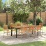 Este juego de comedor para jardín, conocido como el juego de comedor moderno para jardín, tiene un diseño minimalista y atractivo, haciéndolo una gran adición a cualquier área de comedor al aire libre. Está hecho especialmente para jardines y terrazas, combinando funcionalidad y estilo. Gracias a su mezcla de poliratán y madera de acacia, el conjunto tiene un toque moderno con líneas limpias. Perfecto para cenas al aire libre, crea una atmósfera sofisticada, permitiéndote disfrutar de las comidas rodeado de naturaleza. Materiales Resistentes: El juego de comedor moderno combina poliratán y madera de acacia para una construcción sólida y duradera. El poliratán le da un toque moderno, mientras que la madera de acacia aporta calidez y resistencia ante el paso del tiempo. Estructura Fuerte: Con apoyabrazos planos y patas de acero, todo está diseñado para ofrecer un gran soporte y estabilidad. Las patas garantizan robustez, igual que las mesas de estilo rústico, asegurando que este conjunto sea fiable para el uso diario y grandes reuniones. Diseño Práctico: El respaldo terminado, hecho de poliratán, añade un toque elegante sin sacrificar comodidad. Su diseño facilita la integración con distintos estilos de decoración exterior mientras se mantiene atractivo y único. Uso en Exteriores: Especialmente diseñado para exteriores, este conjunto es perfecto en jardines y terrazas. Su resistencia a las inclemencias del tiempo asegura que luzca bien, permitiendo que familiares y amigos disfruten de comidas cómodas en un entorno encantador. Mantenimiento: Para mantenerlo en buen estado, es mejor usar una funda cuando no lo estés usando. Esto simple paso lo protege de las malas condiciones climáticas y la radiación UV sin arruinar su apariencia.