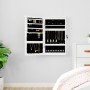 ¡Guarda las joyas y los perfumes de forma discreta y elegante con este estiloso espejo con joyero y luces LED! Material duradero: La madera de ingeniería es de una calidad excepcional, con una superficie lisa, y también cuenta con fuerza, estabilidad y resistencia a la humedad. Hecho de madera de ingeniería, el joyero se limpia fácilmente con un paño húmedo.Amplio espacio de almacenaje: El espejo de almacenaje posee muchos ganchos, perchas y estantes para mantener las joyas ordenadas y al alcance de la mano.Práctico espejo: Con un práctico espejo, este joyero es ideal para prepararse y maquillarse.Protección considerada: El joyero tiene una puerta con cerradura y viene con 2 llaves para garantizar la seguridad de los artículos. Además, la suave funda de tela del interior no solo aporta elegancia, sino que también protege las queridas joyas de arañazos.Prácticas luces LED: Situadas en la parte superior por dentro, las luces LED se encienden automáticamente al abrir la puerta para ayudarte a encontrar tus joyas.Diseño que ahorra espacio: Cuelga el joyero con espejo sobre la puerta con los ganchos incluidos o colócalo en la pared para no ocupar espacio en el suelo. Información útil:Se incluyen tornillos para montaje en pared.Se requieren 3 pilas AA, pero no están incluidas en la entrega.
