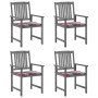 Sillas de jardín con cojines 4 uds madera maciza de acacia gris