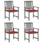 Sillas de jardín con cojines 4 uds madera maciza de acacia gris