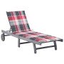 Tumbona de jardín con cojín madera maciza de acacia gris