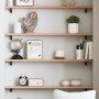 ¿Necesitas más opciones de almacenaje pero no tienes espacio de sobra? Este estante de pared de estilo rústico es la solución perfecta. Construcción duradera: La balda de pared está hecha de madera maciza de roble, un hermoso material natural. La madera de roble tiene un color marrón medio y unas vetas densas, que refuerzan su aspecto único. Gracias al diseño con bisagras, se puede plegar y guardar en espacios estrechos.Usos versátiles: Además de un estante, este estante de almacenaje se puede combinar con bases diferentes según lo que necesites. Se puede utilizar como encimera de baño, superficie de armario, de escritorio, de mesa, etc.Superficie tratada: El tablero de la mesa se ha tratado con pintura oscura, por lo que está listo para usar, ya que no necesita un acabado adicional.Hecho a mano con borde vivo: Este tablero de estante está hecho a mano con un borde vivo. Debido a que los nudos, las grietas, las formas ligeramente curvadas y los tonos de color son parte de la madera de roble, cada estante tiene un carácter único. La entrega es aleatoria. Información útil:Al ser un producto natural, la madera puede presentar nudos e imperfecciones que rellenamos con rellenos para garantizar un aspecto liso.