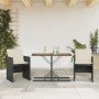 Mesita y sillas con cojines 3 piezas ratán sintético negro