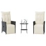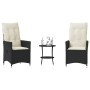 Mesita y sillas con cojines 3 piezas ratán sintético negro