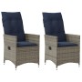 Silla de jardín reclinable con cojines de ratán sintético gris