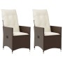 Sillones reclinables jardín con cojines marrones 2 uds ratán PE