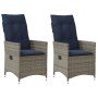 Sillas de jardín reclinables (2 unidades, con cojines), ratán sintético gris