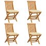 Sillas de jardín 2 uds madera maciza de teca con cojines verdes