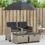 Sofá jardín 2 plazas con sombrilla y taburetes ratán PE negro