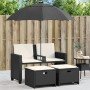 Este sofá de jardín con sombrilla y reposapiés es el complemento perfecto para el jardín, terraza o patio, ya que proporciona un espacio confortable y acogedor para charlar con familiares y amigos o simplemente relajarte y disfrutar del aire libre. Material duradero: El ratán sintético, también conocido como ratán sintético, es un material sintético resistente y de bajo mantenimiento que se parece al ratán natural. Es ligero, fácil de limpiar y se usa comúnmente para muebles de exterior debido a su durabilidad y propiedades resistentes a la intemperie.Práctica sombrilla: El sofá de jardín incorpora una sombrilla con mecanismo de inclinación, que permite ajustar fácilmente el toldo para obtener una sombra y protección óptimas contra el sol.Funda extraíble y lavable: Estos cojines cuentan con fundas extraíbles para facilitar su lavado y mantenimiento.Almacenamiento compacto: Estos taburetes pueden colocarse debajo de los asientos para ahorrar espacio.Estructura robusta y estable: La estructura de acero con recubrimiento en polvo garantiza que el mueble de jardín sea resistente y estable para usarlo a diario al aire libre. Información útil:Para asegurarte de que tus muebles de exterior se mantengan hermosos, recomendamos protegerlos con una funda impermeable.