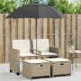 Sofá jardín 2 plazas sombrilla y taburetes ratán PE gris claro