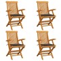 Sillas de jardín 3 uds madera maciza de teca con cojines grises
