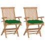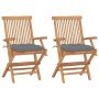 Sillas de jardín 3 uds madera maciza de teca con cojines negros
