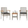 Mesita y sillas con cojines 3 pzas ratán PE madera acacia beige