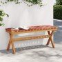 Este banco de jardín es perfecto para uso en exteriores y está diseñado para ser el foco de atención de tu jardín, terraza, patio, etc. Madera maciza de acacia: El banco de jardín está hecho de madera maciza de acacia. La madera maciza de acacia es un bonito material natural. La madera de acacia tiene una veta recta y los nudos le dan al material su estilo rústico característico.Material duradero: La fibra de olefina, también conocida como fibra de polipropileno (PP), es cómoda, resistente, duradera y muy resistente a la decoloración por la luz solar.Diseño de correas: El asiento del banco de jardín está diseñado con correas para mayor comodidad, elegancia y transpirabilidad. Información útil:Para asegurarte de que tus muebles de exterior se mantengan hermosos, recomendamos protegerlos con una funda impermeable.