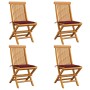Sillas de jardín 4 uds con cojines azul real madera de teca