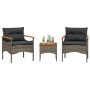 Juego de sofás de jardín con cojines beige 3 pzas ratán PE