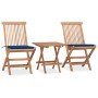 Set comedor de jardín plegable 3 piezas madera de teca cojines