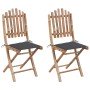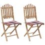 Sillas de jardín plegables con cojines 2 unidades bambú