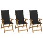 Sillas de jardín plegables 3 uds y cojines madera maciza acacia
