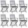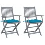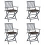 Sillas de jardín plegables 4 uds cojines madera maciza acacia
