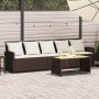 Sofá de jardín de 5 plazas con cojines ratán sintético negro