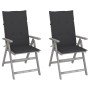 Sillas reclinables jardín y cojines 2 uds madera maciza acacia