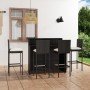 Este set de bar de jardín de ratán tiene un diseño elegante y será el centro de atención de tu jardín, patio o terraza. Hecho de ratán PE resistente a la intemperie e impermeable, este conjunto mesa y sillas de bar es fácil de limpiar, resistente y adecuado para el uso diario. La estructura de acero con recubrimiento en polvo hace que la mesa y los taburetes sean muy resistentes y duraderas. Gracias a su construcción ligera, todos los elementos son fáciles de mover. Los cojines gruesos y extraíbles del asiento son muy cómodos. Las fundas de los cojines tienen cremalleras y se pueden quitar y lavar fácilmente. Nota: Para prolongar la vida útil de los muebles de exterior, te recomendamos que los limpies con regularidad y no los dejes al aire libre sin protección innecesariamente.Limpia: Usa una solución de jabón suaveAlmacenamiento: Si es posible, guárdalos en un lugar fresco y seco en el interior. Si el producto se almacena al aire libre, protégelo con una funda impermeable. Limpia y seca el exceso de agua o nieve de las superficies planas después de una lluvia o nevada. Permite la ventilación para evitar daños relacionados con la humedad.