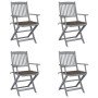 Este moderno juego de sillas de comedor de madera con cojines da un toque de estilo natural al jardín, la terraza o el patio. Este juego de sillas plegables es una gran opción para comer. Estas sillas de comedor están hechas de madera maciza de acacia, una madera dura tropical, por lo que son resistentes a la intemperie y muy duraderas. La madera maciza de acacia posee la fuerza para soportar pesos y para aguantar el desgaste y el paso del tiempo. La superficie en gris deslavado se limpia fácilmente con un paño húmedo. Las sillas se pueden plegar para ahorrar espacio cuando no se usen. Además, los cojines incluidos proporcionan un plus de comodidad mientras descansas o comes. Cada cojín cuenta con dos juegos de cuerdas para fijarlo firmemente en la silla.