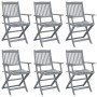 Sillas de jardín plegables 6 uds cojines madera maciza acacia