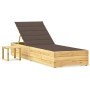 Tumbona de jardín con mesa y cojín de madera de pino impregnada