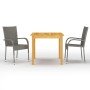 ¡Crea una estética atractiva y cohesionada en el espacio al aire libre de tu casa con este juego de comedor para jardín! La mesa de comedor está hecha de madera maciza de acacia con un acabado al aceite, por lo que es estable, duradera y fácil de mantener. Con una estructura de acero con recubrimiento en polvo cubierta con ratán PE resistente a la intemperie, estas sillas de comedor son robustas y fáciles de limpiar. Las sillas de exterior son ligeras y se pueden apilar para ahorrar espacio cuando no se usen. Nota importante: Recomendamos cubrir el set de comedor en caso de lluvia, nieve y heladas para que sea más duradero.