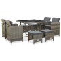 Set comedor de jardín 5 piezas y cojines ratán sintético marrón