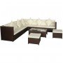 Este set de sofás de ratán, elegante y muy cómodo, se convertirá en el centro de atención de su jardín o patio. Gracias al ratán PE resistente a la intemperie, el juego de sofás es fácil de limpiar y resistente y adecuado para el uso diario. El sofá cuenta con una robusta estructura de acero con recubrimiento en polvo, que es muy duradera. Los cojines extraíbles del asiento y del respaldo son muy cómodos. Las fundas de poliéster son suaves y fáciles de limpiar. El juego de sofás de ratán se puede mover fácilmente para adaptarse a cualquier entorno. La entrega incluye dos sofás de 2 plazas, 2 sofás sin reposabrazos, 1 sofá esquinero, 2 reposapiés, 1 mesa de centro, 8 cojines de respaldo, 7 cojines de asiento y 6 almohadas.Nota: Recomendamos cubrir el set bajo la lluvia, la nieve y las heladas.