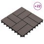 Este conjunto de baldosas de plataforma de WPC, con un azulejo de tamaño de 30 x 30 cm, consta de 11 piezas y cubre una superficie total de 1 metro cuadrado. Será perfecto para patios, balcones, baños o su área de piscina o spa. Estas baldosas de WPC de alta calidad cuentan un sistema de enganche de conexión rápida, lo que le permite instalarlos fácil y rápidamente sin la necesidad de herramientas. Hechas de compuesto plástico de madera de alta calidad, nuestras losetas son resistentes al agua y muy duraderas.