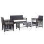 Set muebles de jardín 4 piezas y cojines ratán sintético marrón