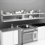 Nuestra estantería de pared de acero inoxidable con 2 niveles no solo es elegante sino también muy funcional, por lo que será una gran opción para aquellos que necesitan espacio de almacenamiento extra en la cocina. Sirve como un lugar perfecto para guardar platos y otros utensilios de cocina. Hecha de acero inoxidable, la estantería de pared para cocina es muy duradera, estable y fácil de limpiar, lo que lo hace perfecta para lugares en los que se requiere un alto nivel de higiene. Los estantes poseen una capacidad total de carga de 40 kg. Los accesorios de montaje están incluidos y nuestra estantería de pared colgante es fácil de montar.