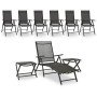 Este juego de salón de jardín, con un diseño elegante y atemporal, tiene todo lo que necesitas para relajarte y descansar al aire libre. Este juego de muebles de exterior está hecho de estructura de aluminio, lo que lo hace ligero y fácil de transportar. Los asientos son cómodos con textilene transpirable. Gracias al respaldo ajustable con 7 posiciones, siempre podrás encontrar la posición más cómoda. Los reposapiés son ideales para poner los pies en alto y también sirven como asientos adicionales para los niños. Cuando no está en uso, cada pieza se puede plegar fácilmente para ahorrar espacio. Nota: Para prolongar la vida útil de los muebles de exterior, te recomendamos que los limpies con regularidad y no los dejes al aire libre sin protección innecesariamente.Limpieza: Usar una solución de jabón suaveAlmacenamiento: Si es posible, guarda el producto en un lugar fresco y seco en el interior. Si el producto se almacena al aire libre, protégelo con una funda impermeable. Limpia y seca el exceso de agua o nieve de las superficies planas después de una lluvia o nevada. Permite la ventilación para evitar daños relacionados con la humedad.