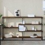 Añade un toque de elegancia a la entrada, el salón o el pasillo con esta elegante mesa consola. Material duradero: La madera de ingeniería tiene una calidad excepcional, con una superficie lisa, y también se caracteriza por su fuerza, estabilidad y resistencia a la humedad. Hecha de madera de ingeniería, la mesita de sofá es fácil de limpiar.Amplio espacio de almacenaje: La mesa de recibidor ofrece un amplio espacio de almacenaje para mantener bien organizados y al alcance revistas, libros, artículos decorativos y otros objetos de uso diario.Patas ajustables: La seis patas regulables, con tacos de plástico, mantienen equilibrada la mesa de pasillo en terrenos irregulares y aumentan su estabilidad.Estructura metálica: La estructura metálica añade un estilo industrial a la casa, además de garantizar su durabilidad y estabilidad. Advertencia:Para evitar que vuelque, este producto debe usarse con el dispositivo de fijación a la pared incluido.