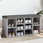¡Ten los zapatos ordenados y siempre a mano con este banco zapatero! Material robusto: La madera contrachapada tiene una calidad excepcional, con una superficie lisa y también cuenta con fuerza, estabilidad y resistencia a la humedad.Amplio espacio de almacenaje: El banco de pasillo cuenta con un amplio espacio para guardar el calzado y ayuda a que la casa esté limpia y odenada..Asiento confortable: El mullido cojín de asiento proporciona una comodidad óptima mientras te pones y te quitas los zapatos.Uso versátil: El banco es perfecto para usarse como banco zapatero en el pasillo, o como banco de almacenaje en el salón. Máximo 110 kg por asiento. Tenga en cuenta el riesgo de incendios abiertos y otras fuentes de calor intenso en las proximidades del producto.