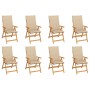 Sillas de jardín reclinables con cojines 8 uds teca maciza