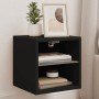 Estos muebles de pared para TV son la solución perfecta para la casa, con el fin de maximizar el espacio y mantener el suelo despejado. Material duradero: La madera contrachapada tiene una calidad excepcional, con una superficie lisa y también cuenta con fuerza, estabilidad y resistencia a la humedad.Luces LED RGB: El mueble multimedia de pared está equipado con increíbles luces LED RGB. Con diversos menús personalizables, puedes cambiar el color de las luces sin esfuerzo e incluso hacer que se ajusten automáticamente. Estas luces LED no sólo realzan el aspecto moderno del mueble de TV flotante, sino que también le dan un toque a la moda.Amplio espacio de almacenaje: El mueble de pared para TV tiene un estante de vidrio, que ofrece amplio espacio para mantener organizados y al alcance objetos pequeños, como libros, DVD y revistas.Versátil: El mueble es multiusos y puede utilizarse como mueble de pared para TV o como mesita de noche de pared. También puedes combinarlo con otros armarios para crear una impresionante pared en el salón.Diseño de pared: El armario con LED se puede montar en la pared para ganar un plus de espacio de almacenaje. De este modo, podrás aprovechar al máximo el espacio del suelo y mantener la zona limpia. Información útil:Los tornillos y los tacos para el interior de la pared no están incluidos. Recomendamos encontrar y utilizar tornillos y tacos adecuados específicamente para las paredes. Si no estás seguro, puedes consultar con un profesional. Lee y sigue cada paso de las instrucciones.El producto tiene un conector USB que necesita una fuente de alimentación USB certificada de 5 V (no incluida).