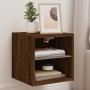 Mesitas de noche de pared con luces LED 2 unidades roble marrón