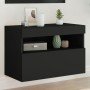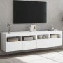 Estos muebles de pared para TV son la solución perfecta para la casa, con el fin de maximizar el espacio y mantener el suelo despejado. Material duradero: La madera contrachapada tiene una calidad excepcional, con una superficie lisa y también cuenta con fuerza, estabilidad y resistencia a la humedad.Luces LED RGB: El mueble multimedia de pared está equipado con increíbles luces LED RGB. Con diversos menús personalizables, puedes cambiar el color de las luces sin esfuerzo e incluso hacer que se ajusten automáticamente. Estas luces LED no sólo realzan el aspecto moderno del mueble de TV flotante, sino que también le dan un toque a la moda.Amplio espacio de almacenaje: El mueble de pared para TV ofrece amplio espacio para mantener organizados y al alcance objetos pequeños, como libros, DVD y revistas.Versátil: El mueble es multiusos y puede utilizarse como mueble de pared para TV o como mesita de noche de pared. También puedes combinarlo con otros armarios para crear una impresionante pared en el salón.Diseño de pared: El armario con LED se puede montar en la pared para ganar un plus de espacio de almacenaje. De este modo, podrás aprovechar al máximo el espacio del suelo y mantener la zona limpia. Información útil:Los tornillos y los tacos para el interior de la pared no están incluidos. Recomendamos encontrar y utilizar tornillos y tacos adecuados específicamente para las paredes. Si no estás seguro, puedes consultar con un profesional. Lee y sigue cada paso de las instrucciones.El producto tiene un conector USB que necesita una fuente de alimentación USB certificada de 5 V (no incluida).