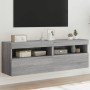 Muebles TV de pared luces LED 2 uds gris hormigón 60x30x40 cm