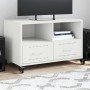 Este mueble para TV es sencillo y práctico, y se adapta perfectamente a tu salón. Material duradero: El acero es un material muy duro y fuerte. Ofrece robustez y estabilidad. Las placas de acero laminadas en frío tienen una buena calidad superficial y una alta precisión dimensional.Función expositora: La resistente superficie del mueble es ideal para exhibir objetos decorativos como marcos y plantas.Amplio almacenaje: El mueble de TV ofrece 2 cajones y 2 estantes que lo convierten en un lugar ideal para guardar todas las revistas, DVD y otros objetos.Fácil mantenimiento: La mesa de centro con superficie resistente a las manchas es fácil de limpiar y puedes mantener la mesa con el mejor aspecto sin esfuerzo.Fácil de mover: Este armario tiene 4 ruedas, lo que hace que se mueva con flexibilidad y se estacione de manera estable en cualquier momento.
