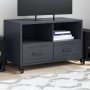 Este mueble para TV es sencillo y práctico, y se adapta perfectamente a tu salón. Material duradero: El acero es un material muy duro y fuerte. Ofrece robustez y estabilidad. Las placas de acero laminadas en frío tienen una buena calidad superficial y una alta precisión dimensional.Función expositora: La resistente superficie del mueble es ideal para exhibir objetos decorativos como marcos y plantas.Amplio almacenaje: El mueble de TV ofrece 2 cajones y 2 estantes que lo convierten en un lugar ideal para guardar todas las revistas, DVD y otros objetos.Fácil mantenimiento: La mesa de centro con superficie resistente a las manchas es fácil de limpiar y puedes mantener la mesa con el mejor aspecto sin esfuerzo.Fácil de mover: Este armario tiene 4 ruedas, lo que hace que se mueva con flexibilidad y se estacione de manera estable en cualquier momento.