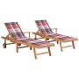 Tumbonas 2 unidadesds madera maciza de teca con cojín gris